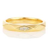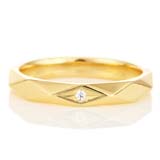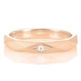 なかなか探してもない面の取り方のフォルムは自社工房の作家の作品です。ピンクゴールド素材でミラー仕上げです。トップの面にはダイヤモンド3石を埋め込んだグロースリングシリーズのプリズム。